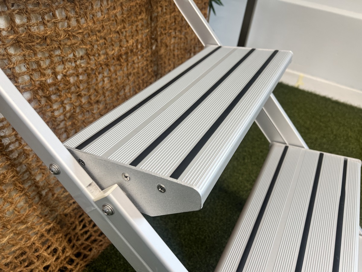 Die Stufen sind mit einem rutschfesten Profil versehen, das durch Rillen und zusätzlich zwei Gummistreifen für sicheren Halt sorgt.