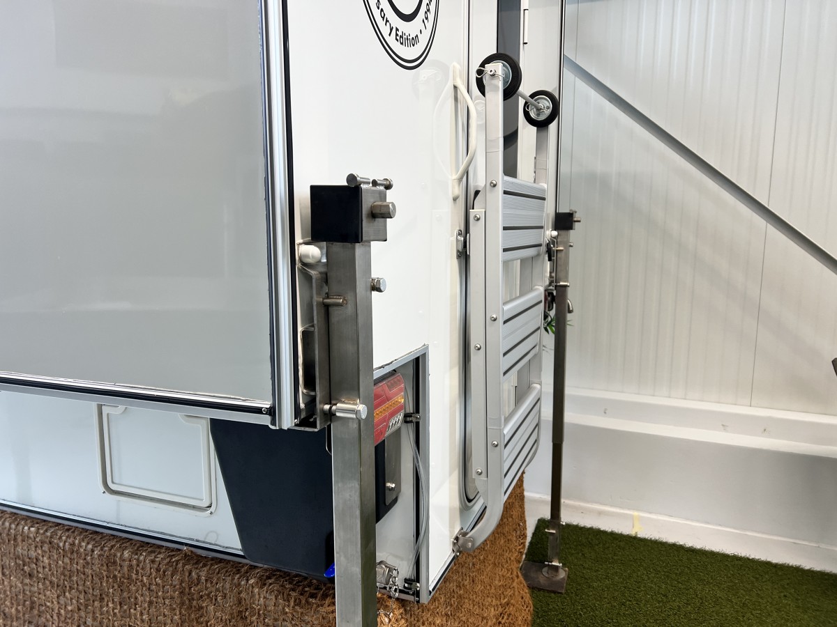 Diese faltbare Einstiegstreppe macht Dein Leben angenehmer. Direkt von außen zugänglich und an zwei Punkten gesichert, ist die WKC-Einstiegstreppe im Handumdrehen bereit. Der Clou: Die Belastung durch das Gewicht des Einsteigenden wird direkt in den Boden abgeleitet. Anders als bei Treppen, die unter der Kabine befestigt sind und keinen Bodenkontakt haben, werden bei der WKC-Einstiegstreppe die auf die Kabine wirkenden Kräfte auf ein Minimum reduziert. Das schont den Boden der Kabine und verlängert oft ihre Lebensdauer.